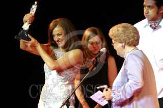 MEXDF31MARZO2004.- Durante la ceremonia de entrega de los Arieles, la actriz Amparo Arozamena accedió al estrado para entregar los premios en medio de una ovación por parte de los asistentes. FOTO: Sandra Perdomo/CUARTOSCURO.COM