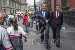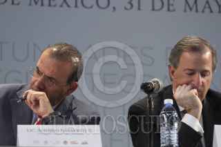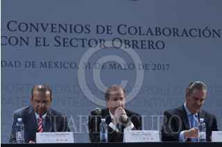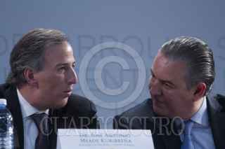 CIUDAD DE MÉXICO, 31MAYO2017.- José Antonio Meade Kuribreña, secretario de Hacienda y Crédito Público (SHCP), y Gerardo Gutiérrez Candiani, titular de la Autoridad Federal para el Desarrollo de las Zonas Económicas Especiales, durante la “Firma de Convenio de Colaboración entre la Autoridad Federal para el Desarrollo de las Zonas Económicas Especiales y el Sector Obrero”, que se realizó en el Antiguo Palacio del Arzobispado. FOTO: MOISÉS PABLO /CUARTOSCURO.COM