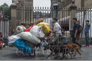 CIUDAD DE MÉXICO, 31MAYO2017.- Un pepenador camina con sus perros frente a la Catedral Metropólitana. Pese a la disminución del desempleo, el trabajo informal continuó a la alza durante el primer trimestre del año, de acuerdo con el Instituto Nacional de Estadística y Geografía (Inegi). FOTO: SELENE PACHECO /CUARTOSCURO.COM