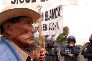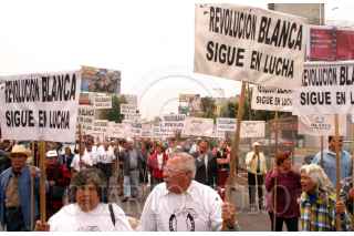 México, D.F. 31 MARZO 2004.- Miembros de la organización Revolución Blanca encabezda por el diputado perredista Emilio Serrano bloquearon Av. Constituyentes frente a lo Pinos como protesta por el cobro de la sustitución de las credenciales del INSEN, que anteriormente habían sido expedidas de forma gratuita. FOTO: Sandra Perdomo/CUARTOSCURO.COM