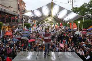TEXCOCO, ESTADO DE MÉXICO, 31MAYO2017.- Delfina Gómez Álvarez, candidata de MORENA a la gubernatura del Estado de México, cerro su campaña ante miles de texcocanos en la plaza central del municipio. FOTO: SAÚL LÓPEZ /CUARTOSCURO.COM