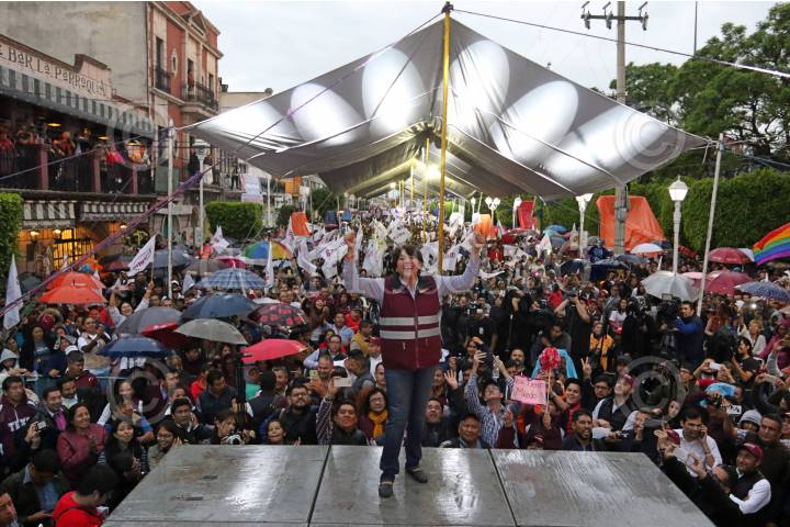 TEXCOCO, ESTADO DE MÉXICO, 31MAYO2017.- Delfina Gómez Álvarez, candidata de MORENA a la gubernatura del Estado de México, cerro su campaña ante miles de texcocanos en la plaza central del municipio. FOTO: SAÚL LÓPEZ /CUARTOSCURO.COM