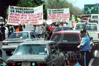 CUERNAVACA, MORELOS 08ABRIL2004.- Decenas de habitantes de Puente de Ixtla, realizarón un bloqueo en la autopista Cuernavaca-México. Los manifestantes piden la liberación del estudiante Sergio Espin quien es acusado de secuestro. FOTO: Margarito Pérez/CUARTOSCURO.COM