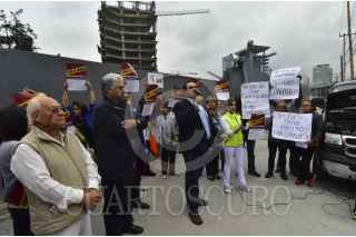 CIUDAD DE MÉXICO, 01JUNIO2017.- Integrantes del Movimiento Unidad y Encuentro Vecinal clausuraron simbólicamente la construcción del centro comercial ARTZ Pedregal “Antara del sur”, que se ubica en Periférico y Picacho Ajusco. Los inconformes acusan que una centro comercial y habitacional causará un gran conflicto vial, falta de agua, además de romper la tranquilidad de la zona. FOTO: ARMANDO MONROY /CUARTOSCURO.COM