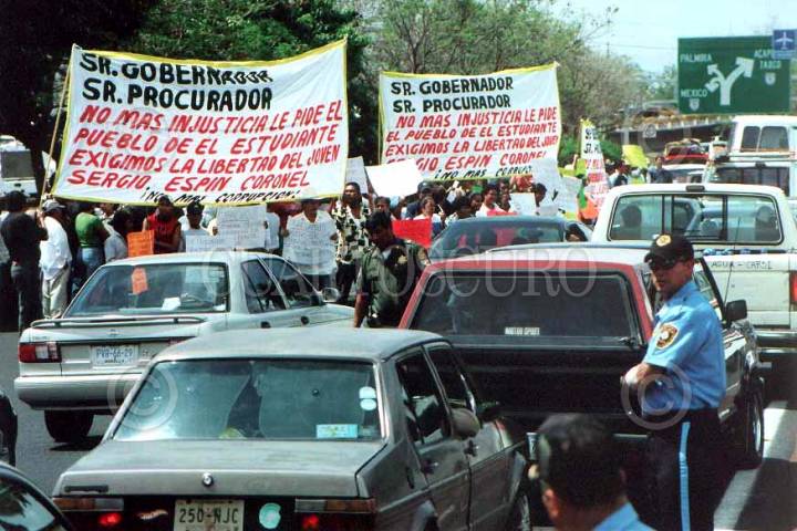 CUERNAVACA, MORELOS 08ABRIL2004.- Decenas de habitantes de Puente de Ixtla, realizarón un bloqueo en la autopista Cuernavaca-México. Los manifestantes piden la liberación del estudiante Sergio Espin quien es acusado de secuestro. FOTO: Margarito Pérez/CUARTOSCURO.COM