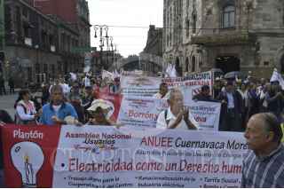 CIUDAD DE MÉXICO, 02JUNIO2017.- En una marcha denominada "Por la solución a nuestras demandas" organizaciones como el Sindicato Mexicano de Electricistas (SME), la Asamblea Nacional de Usuarios de Energía Eléctrica (ANUEE), la Organización Política del Pueblo, entre otros, marcharon desde el Zócalo capitalino hacia la Comisión Federal de Electricidad, ubicada en Avenida en Paseo de la Reforma Marcha, los manifestantes exigian una tarifa justa a los precios de la electricidad así como trabajo digno para la Cooperativa del Luz y Fuerza del Centro. FOTO: SELENE PACHECO /CUARTOSCURO.COM