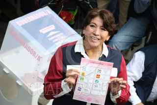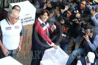 TEXCOCO, ESTADO DE MÉXICO, 04JUNIO2017.- Delfina Gómez Álvarez, candidata de MORENA a la gubernatura del estado realizó su sufragio electoral en la casilla 4631 ubicada en Texcoco. FOTO: SAÚL LÓPEZ /CUARTOSCURO.COM