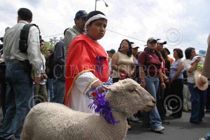 México, D.F. 08 Abril 2004.- Jesus de Nazaret es acompañado por su angel guardian durante su recorrido por Iztapalapa. FOTO: Nelly Salas/CUARTOSCURO.COM
