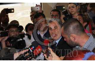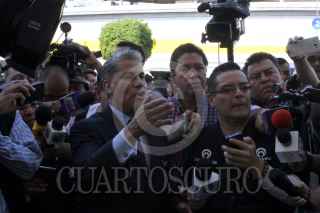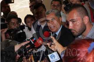 ECATEPEC, ESTADO DE MÉXICO, 04JUNIO2017.- Alejandro Rojas Díaz Durán, asesor jurídico de Ricardo Monreal. Jefe delegacional en Cuauhtémoc , platico con los medios de comunicación sobre la detención del chofer de Monreal quien presuntamente portaba dinero y una arma de fuego, cuando un grupo de supuestamente militantes del PRI interrumpió para hacerle reclamos sobre el jefe delegacional. FOTO: ANTONIO CRUZ /CUARTOSCURO.COM