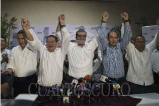 TEPIC, NAYARIT, 04JUNIO2017.- Toño Echevarría, candidato ala gubernatura de Nayarit, acompañado de sus padres y varios funcionarios públicos de la "Alianza por ti", del PAN, PT, PRD, y PRS, ofreció una conferencia de prensa para avisar su triunfo electoral. FOTO: TERCERO DÍAZ /CUARTOSCURO.COM