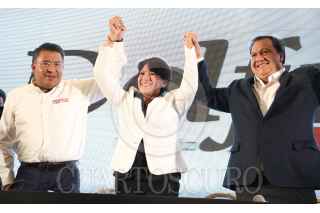 TOLUCA, ESTADO DE MÉXICO, 04JUNIO2017.- Delfina Gómez Álvarez, candidata de MORENA a la gubernatura del estado de México, en conferencia de prensa anuncio los detalles del proceso electoral pu anuncio que esperaran los resultados de las actas contabilizadas. FOTO: SAÚL LÓPEZ /CUARTOSCURO.COM