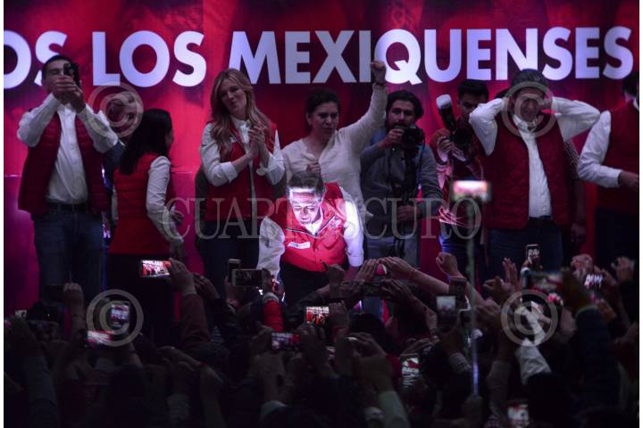 TOLUCA, ESTADO SE MÉXICO, 05JUNIO2017.- El candidato de la coalición PRI-PES-PNA-PVEM Alfredo del Mazo Maza agradeció a la militancia priista por el apoyo y por el triunfo en las elecciones a gobernador del Estado de México, esto en la sede estatal del PRI. FOTO: ARTEMIO GUERRA BAZ /CUARTOSCURO.COM