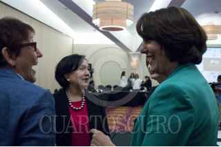 CIUDAD DE MÉXICO, 05JUNIO2017.- Teresa del Carmen, directora general de INMUJERES, Amalia García, secretaria del Trabajo y Fomento al Empleo, y Patricia Mercado, secretaria de gobierno de la ciudad, encabezaron el taller "Sistema de cuidado de la Ciudad de México" en el que se informó sobre las tareas de cuidado que realizan las mujeres para la atención a niñas, niños, adultos mayores, personas en situación de dependencia por enfermedad o discapacidad y sobre la equidad de género en el ámbito laboral. FOTO: SELENE PACHECO /CUARTOSCURO.COM