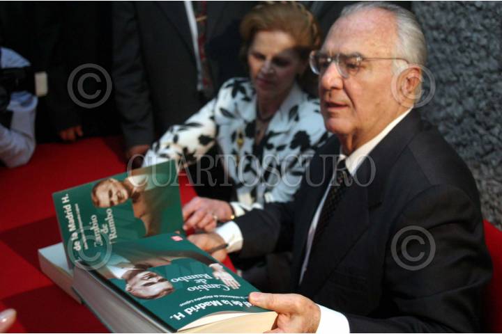 México. D.F. 22ABRIL2004.-Miguel de la Madrid, expresidente de la República y Beatriz Paredes, senadora, durante la presentación del nuevo libro de de la Madrid "Cambiando de Rumbo" editado por el Fondo de Cultura Económica. FOTO: Moisés Pablo/CUARTOSCURO.COM