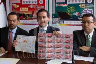CIUDAD DE MÉXICO, 06JUNIO2017.- Se presentaron las nuevas medidas de seguridad que cuentan los billetes de lotería. Entre las nuevas innovaciones resaltan la inclusión de elementos variables cromáticos e imágenes dinámicas visibles sólo con descodificador, código “QR” para ser descodificado por un teléfono inteligente, y código verificado visible sólo con un lector digital. FOTO: MARIO JASSO /CUARTOSCURO.COM