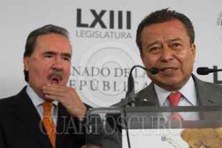 CIUDAD DE MÉXICO, 07JUNIO2017.- Fernando Herrera, coordinador de los senadores del PAN; César Camacho Quiroz, coordinador de los diputados federales del PRI, y Emilio Gamboa Patrón, coordinador de los senadores del PRI, durante la sesión de la Comisión Permanente en el Senado de la República. FOTO: MOISÉS PABLO /CUARTOSCURO.COM