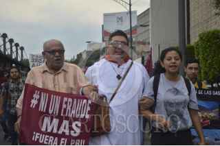 CIUDAD DE MÉXICO, 07JUNIO2017.- Integrantes del partido MORENA se manifestaron frente a la sede nacional del Partido Revolucionario Institucional (PRI) para exigir un recuento de votos de los comicios que se vivieron el pasado domingo en donde se eligió a nuevo gobernador, ellos señalan que su candidata Delfina Gómez Álvarez ganó la contienda. FOTO: SELENE PACHECO /CUARTOSCURO.COM
