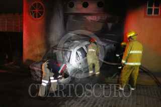 CHILPANCINGO, GUERRERO, 07JUNIO2017.- Después de registrase algunas balaceras, un grupo de sujetos impactó un automóvil del servicio público en la entrada de una accesoria y le prendieron fuego. Poco después, elementos de bomberos sofocaron el incendio. FOTO: CUARTOSCURO.COM