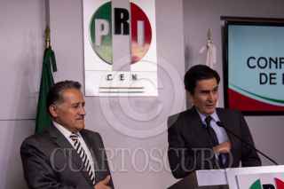 CIUDAD DE MÉXICO, 08JUNIO2017.- Arturo Zamora, dirigente del sector popular del PRI, durante la conferencia de prensa para anunciar la expulsión y pérdida de derechos partidistas del ex gobernador de Quintana Roo, Roberto Borge, así como la suspensión de los mismo del diputado local en Guerrero, Saúl Beltrán Orozco, señalado como líder de “Los Tequileros”. FOTO: GALO CAÑAS /CUARTOSCURO.COM