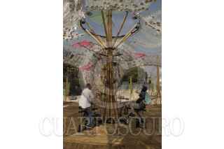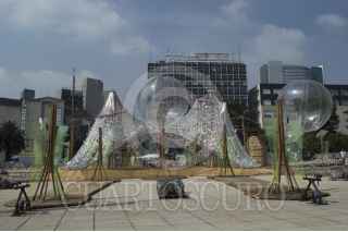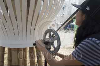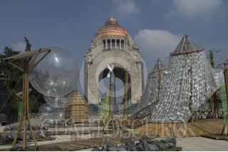 CIUDAD DE MÉXICO, 09JUNIO2017.- Francisco Erazo, es el arquitecto que encabezó el pabellón Caracol de Viento instalado frente al Monumento a la Revolución, hecho de materiales reciclados consta de mecánismos que son activados por el público y su estructura se relaciona con mitos de las culturas mesoámericanas. Los encargados del proyecto esperan que en los próximos días sea inaugurado para poder ser visitado por el público. FOTO: SELENE PACHECO /CUARTOSCURO.COM