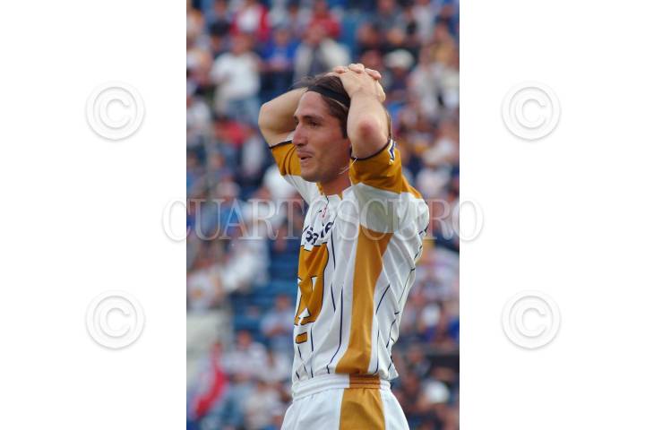 MÉXICO, D. F. 24.ABRIL.2004.- La máquina del Cruz Azul derrotó 2 goles a cero a losPumas de la UNAM en el juego de la jornada 16 del torneo de clausura 2004. En la gráfica Oscar "el conejo" Pérez celebra el triunfo de su equipo. FOTO: Iván Stephens/CUARTOSCURO.COM