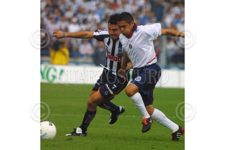 MONTERREY, N.L. 24.ABRIL.2004.- Los jugadores de Monterrey, festejan una de las 3 anotaciones de este dia con las que lograron empatar a Guadalajara FOTO: Jorge Lòpez/CUARTOSCURO.COM