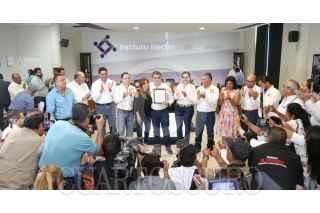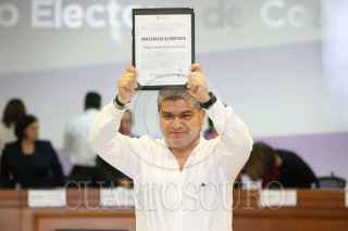 SALTILLO, COAHUILA, 11JUNIO2017.- Miguel Ángel Riquelme Solís recibió la constancia de mayoría en el instituto electoral de Coahuila, que lo acredita como gobernador electo del estado. FOTO: VENUSTIANO MADERO /CUARTOSCURO.COM