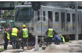 CIUDAD DE MÉXICO, 12JUNIO2017.- El tren ligero se descarriló a la altura de la estación Estadio Azteca, por lo que autoridades tuvieron que cancelar su uso la tarde de hoy. FOTO: ARMANDO MONROY /CUARTOSCURO.COM