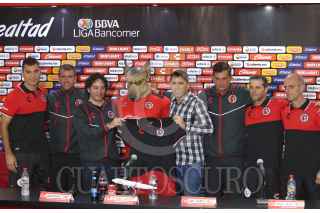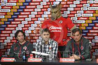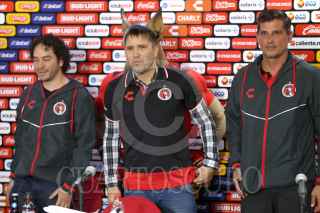 TIJUANA, BAJA CALIFORNIA, 12JUNIO2017.- Presentación del nuevo cuerpo técnico de Club Tijuana Xoloitzcuintles que encabeza el director técnico Eduardo “Chacho” Coudet, quien tomó las riendas del plantel Rojinegro de cara al inicio del Torneo Apertura 2017 de la LIGA MX. El presidente del club, Jorgealberto Hank encabezó a conferencia realizada en la sala de prensa del estadio Caliente. FOTO: CUARTOSCURO.COM