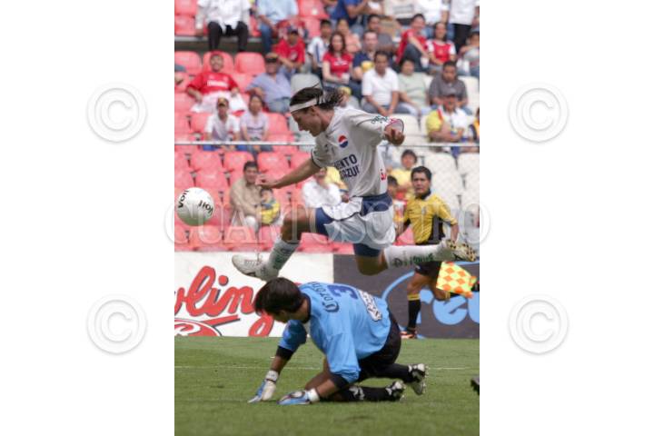 México, D.F., 25ABRIL2004.- Los Tuzos del Pachuca perdieron ante el Atlante 3-1, en el estadio Azteca. En la imagen, el delantero tuzo Sergio Santana pelea el esferico durante el encuentro. FOTO: Moisés Pablo/CUARTOSCURO.COM