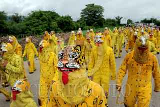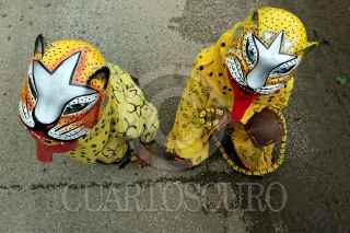 SUCHIAPA, CHIAPAS, 13JUNIO2017.- Hombres se visten de tigres y chamulas en la danza del Calalá, para salir a las principales calles de la localidad en honor del Corpus Christi y pedir por las buenas cosechas del año. FOTO. JESÚS GARCÍA /CUARTOSCURO.COM