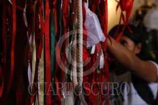 PUEBLA, PUEBLA, 13JUNIO2017.- Creyentes, en su mayoría mujeres acuden a la iglesia de San Antonio de Padua en donde le colocan veladoras y listones rojos para pedir novio o favores amorosos al santo católico. FOTO: HILDA RIOS /CUARTOSCURO.COM