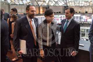 CIUDAD DE MÉXICO, 14JUNIO2017.- Penny Pritzker, ex secretaria de Comercio de Estados Unidos, José Oriol Bosch, director del grupo Bolsa Mexicana de Valores, y Octavio González, director general de Si Renta, encabezaron la ceremonia conmemorativa de los certificados bursátiles fiduciarios inmobiliarios de SiRenta con la clave de cotización SIRENCK. FOTO: TERCERO DÍAZ /CUARTOSCURO.COM