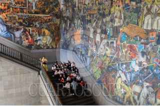 CIUDAD DE MÉXICO, 14JUNIO2017.- Un grupo de niños escucha a un guía que les explica el mural "Epopeya del pueblo mexicano" de Diego Rivera. FOTO: DIEGO SIMÓN SÁNCHEZ /CUARTOSCURO.COM