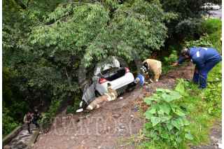 CIUDAD DE MÉXICO, 14JUNIO2017.- Un auto fue abandonado en un barranco, un árbol detuvo que la unidad se fuera a la profundidad, bomberos realizaron maniobras para sacarlo del lugar, se desconoce el paradero del chófer. Los hechos en el kilómetro 28 de la autopista México-Toluca. FOTO: ARMANDO MONROY /CUARTOSCURO.COM