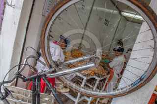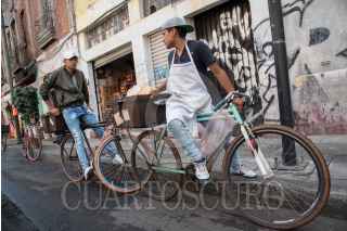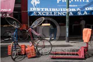 CIUDAD DE MÉXICO, 15JUNIO2017.- Trabajadores de los mercados en la zona centro, utilizan bicicletas con canastas para repartir los cortes de carnes y pollos a diferentes tiendas de la ciudad. FOTO: TERCERO DÍAZ /CUARTOSCURO.COM