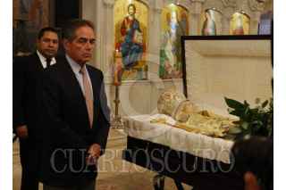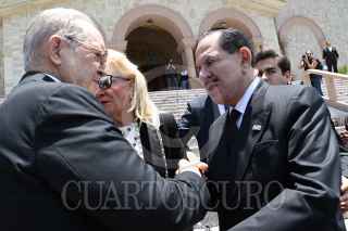 HUIXQUILUCAN, ESTADO DE MÉXICO, 15JUNIO2017.- Los empresarios Olegario Vázquez Raña y Juan Francisco Ealy Ortiz se saludan las afueras del funeral de Antonio Chedraoui, Arzobispo Metropolitano de la Iglesia Ortodoxa de Antioquía, para México, Venezuela, Centroamérica y el Caribe. FOTO: SAÚL LÓPEZ /CUARTOSCURO.COM