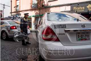 CIUDAD DE MÉXICO, 15JUNIO2017.- Un individuo que estaba a punto de ser amonestado con la colocación de una "araña" por un oficial de policia, logró darse a la fuga en la zona centro. FOTO: TERCERO DÍAZ /CUARTOSCURO.COM