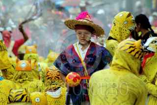 SUCHIAPA, CHIAPAS, 15JUNIO2017.- Durante la celebración del Jueves de Corpus Christi, habitantes de la localidad salen a recorrer las principales calles para realizar el baile del Calalá y pedir por las lluvias y las cosechas del año. FOTO. JESÚS GARCÍA /CUARTOSCURO.COM