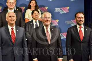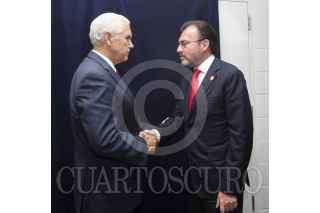 MIAMI, FLORIDA, 15JUNIO2017.- En l marco de la Conferencia sobre Prosperidad y Seguridad en Centroamérica, el Secretario de Relaciones Exteriores, Luis Videgaray Caso, se reunió con el Vicepresidente de los Estados Unidos de América, Mike Pence. FOTO: SRE /CUARTOSCURO.COM