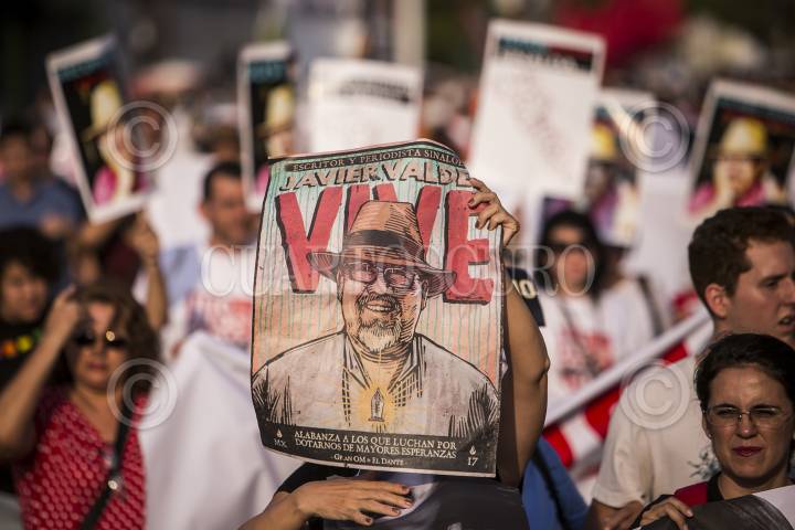 CULIACAN, SINALOA, 15JUNIO2017.- A un mes del asesinato del periodista Javier Valdez, amigos, familiares, colegas y la sociedad en general marcharon de la catedral al palacio de gobierno del Estado para exigir justicia. FOTO: RASHIDE FRIAS /CUARTOSCURO