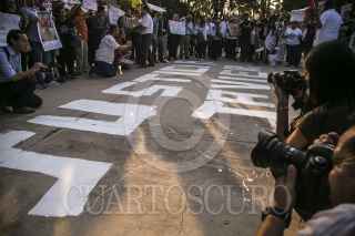 CULIACAN, SINALOA, 15JUNIO2017.- A un mes del asesinato del periodista Javier Valdez, amigos, familiares, colegas y la sociedad en general marcharon de la catedral al palacio de gobierno del Estado para exigir justicia. FOTO: RASHIDE FRIAS /CUARTOSCURO