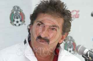 México, D.F. 26 ABRIL 2004.- Ricardo Lavolpe, director técnico de la selección mexicana en conferencia de prensa, donde se le cuestionó la ausencia del delantero Cuauhtémoc Blanco en el próximo partido amistoso contra Estados Unidos. FOTO: Sandra Perdomo/CUARTOSCURO.COM