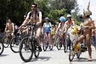 PUEBLA, PUEBLA, 17JUNIO2017.- Se llevó a cabo la sexta rodada nudista para exigir respeto y educación vial hacia los usuarios de transporte no motorizados y peatones. FOTO: HILDA RIOS /CUARTOSCURO.COM