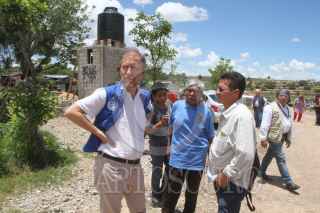 ASUNCIÓN NOCHIXTLÁN, OAXACA., 17JUNIO2017.- El presidente de la Comisión Nacional de los Derechos Humanos (CNDH), Luis Raúl González acudió al municipio de Asunción Nochixtlán a dos días de cumplirse un año del desalojo fallido realizado por la policía federal y estatal en dicha localidad. El ombudsman acudió acompañado del representante en México de La Oficina del Alto Comisionado de las Naciones Unidas para los Derechos Humanos y el defensor de los Derechos Humanos de los Pueblos de Oaxaca, Arturo Peimbert. Los tres sostuvieron un coversatorio con los familiares de víctimas y heridos del 19 de junio del 2016, tras esto recorrieron la colonia noviembre en donde un grupo de niños tuvo que ser rescatados debido a que estaban siendo afectados por los gases lacrimógenos que los policías utilizaron hace un año. FOTO: ARTURO PÉREZ ALFONSO /CUARTOSCURO.COM