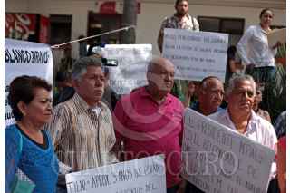 CUERNAVACA, MORELOS, 19JUNIO2017.- Jubilados del Ayuntamiento de la capital bloquearon algunas calles adyacentes al edificio en exigencia de una audiencia con el alcalde Cuauhtémoc Blanco. Los pensionados denuncian que el instituto de crédito del estado les retiene el dinero. FOTO: MARGARITO PÉREZ RETANA /CUARTOSCURO.COM