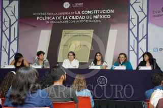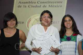 CIUDAD DE MÉXICO, 19JUNIO2017.- Perla Gómez Gallardo, presidenta de la Comisión de Derechos Humanos del Distrito Federal (CDHDF), y las coordinadoras de las organizaciones sociales: Josefina Valencia de “Clóset de Sor Juana”, y Cristina Masferrer de “Afrodescendencias México, Investigación e Incidencia”, durante la conferencia de prensa de la presentación del proceso “Amicus Curiae” para la defensa de la Constitución Política de la Ciudad de México. FOTO: MARIO JASSO /CUARTOSCURO.COM