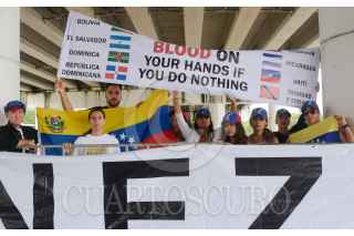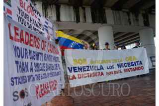 CANCÚN, QUINTANA ROO, 21JUNIO2017.- Venezolano continúan su protesta afuera del Hotel Moon Palace, sede del XLVll Periodo Ordinario de Sesiones de la Asamblea General de la OEA. FOTO: ELIZABETH RUIZ /CUARTOSCURO.COM