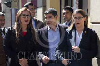 CIUDAD DE MÉXICO, 21JUNIO2017.- La diputada Margarita Martínez Fisher, el presidente del Partido Acción Nacional (PAN) en la Ciudad de México, Mauricio Tabe y la diputada Wendy González Urrutia ofrecieron conferencia de prensa para proclamarse a favor de que continúe la construcción de la Línea 7 del Metrobús pero con una mayor integración y atención de las denuncias ciudadanas. FOTO: GALO CAÑAS /CUARTOSCURO.COM