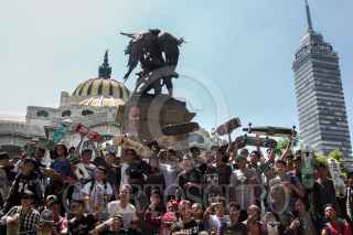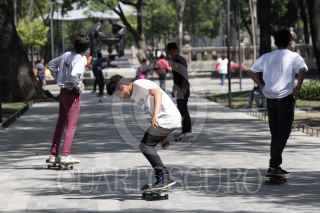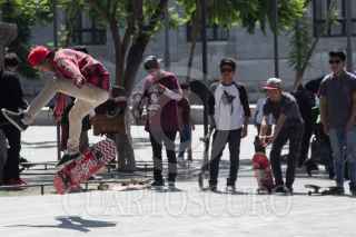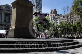 CIUDAD DE MÉXICO, 21JUNIO2017.- Miles de jóvenes alrededor del mundo sale cada 21 de junio para festejar el “Día de ir a patinar” (Go Skateboarding Day). Esta festividad nació en 2004 en Estados Unidos y se ha extendido a diferentes partes del mundo como una manera de promocionar y apoyar a este deporte. En la imagen, jóvenes realizan trucos a un costado del Palacio de Bellas Artes. FOTO: GALO CAÑAS /CUARTOSCURO.COM